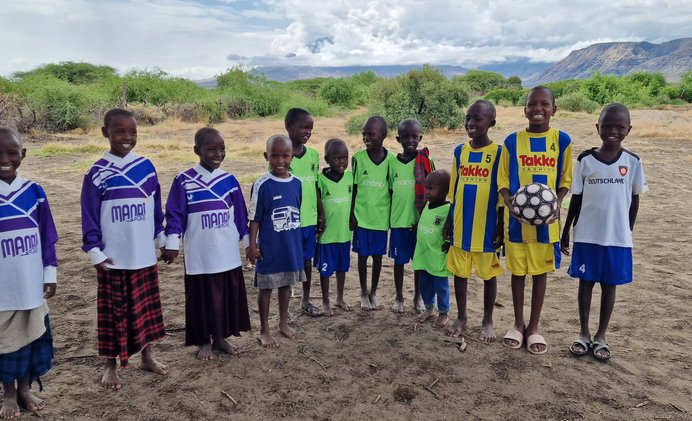 Seit 2024 bringt Martina immer wieder Trikot- und Ballspenden von lokalen Fußballvereinen nach Engare Sero - teils mit ungewöhnlichen Mitteln
